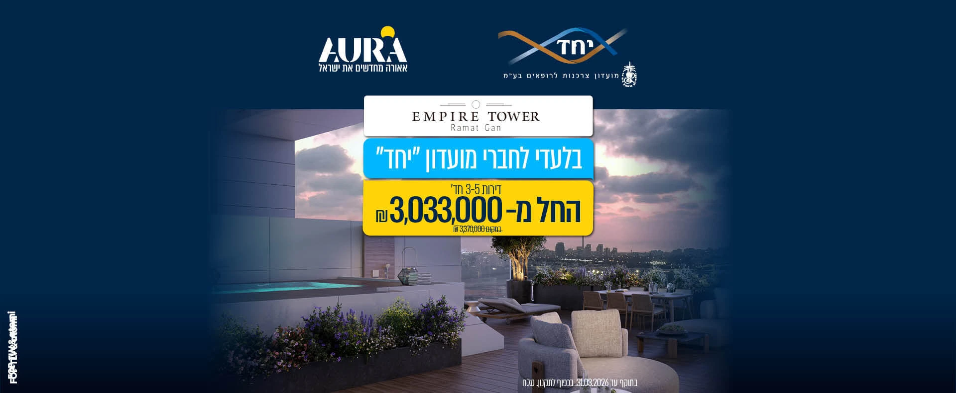 מתחת צריך לעדכן ל: תוקף המבצע עד ה-31.3, בכפוף לתקנון המבצע. החברה שומרת לעצמה את הזכות לבטל ו/או לשנות את המבצע באופן מלא ו/או חלקי, בכל עת, בהתאם לשיקול דעתה הבלעדי, ללא צורך במתן הודעה על כך מראש.